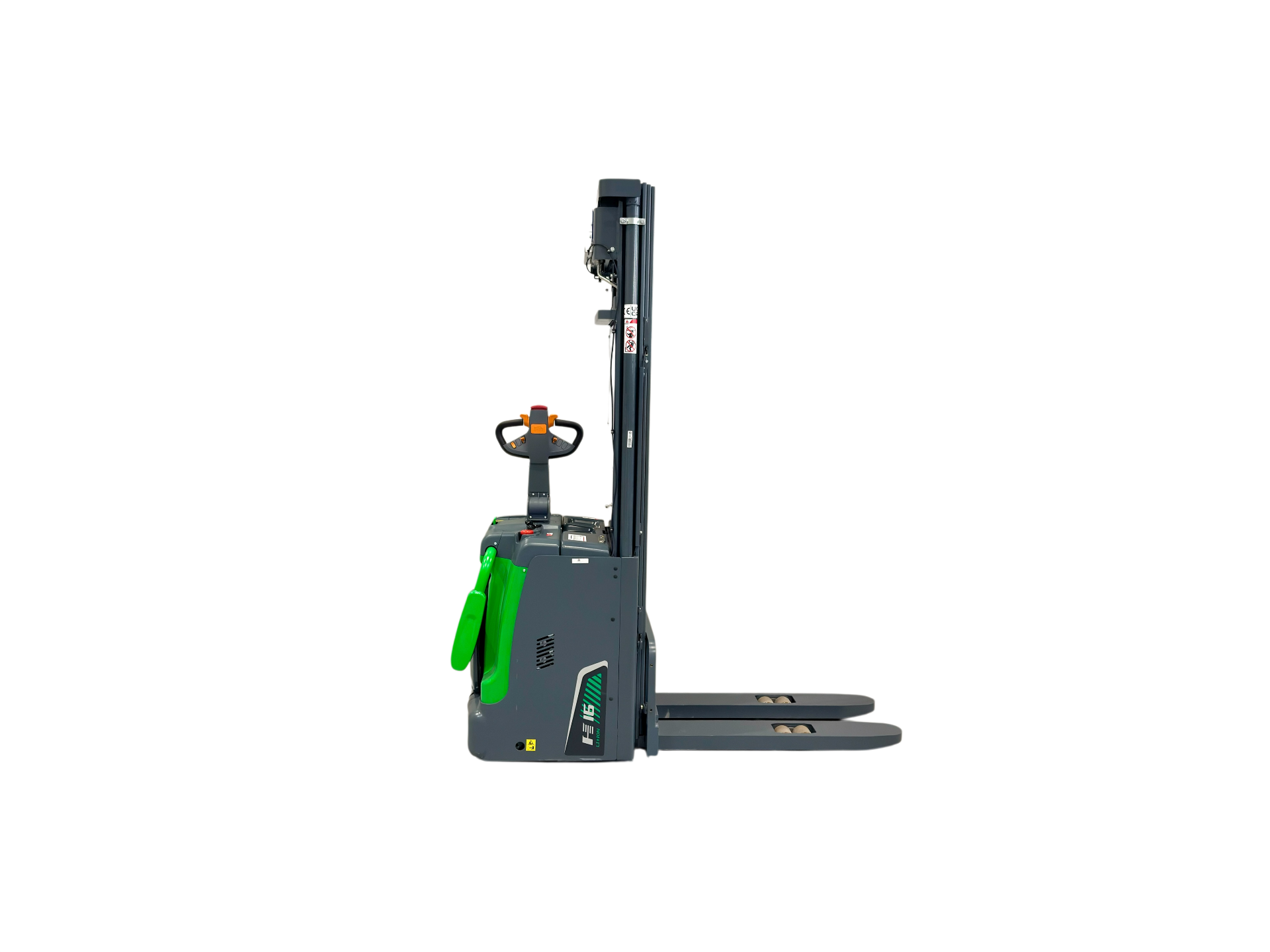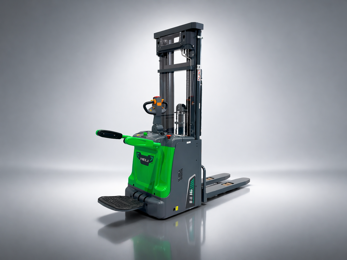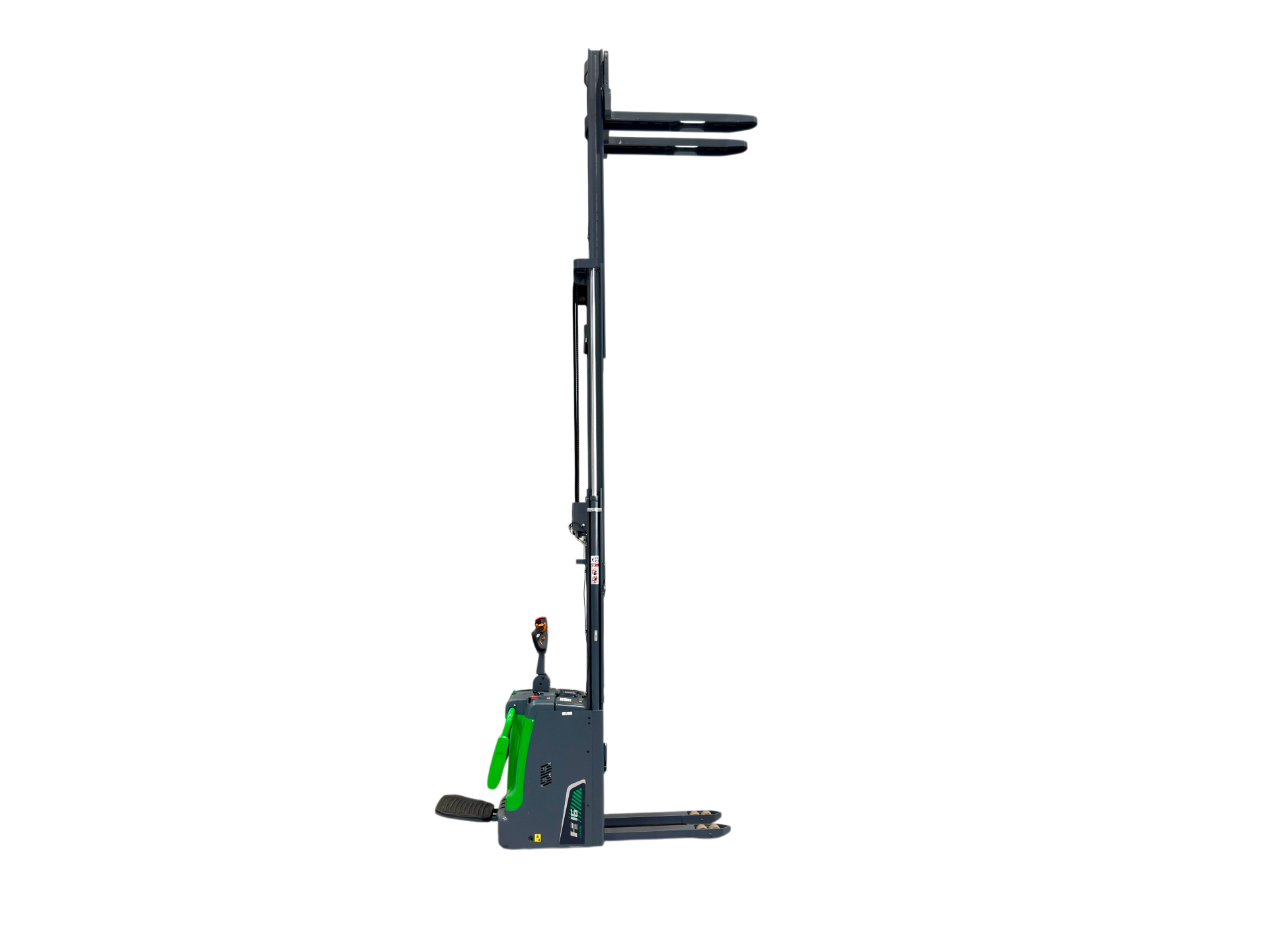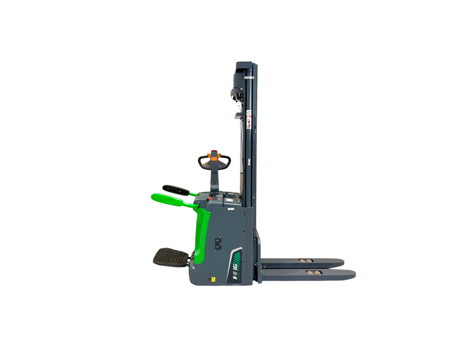 Elektrisk staplare med åkplattform för effektiv, snabb och säker materialhantering