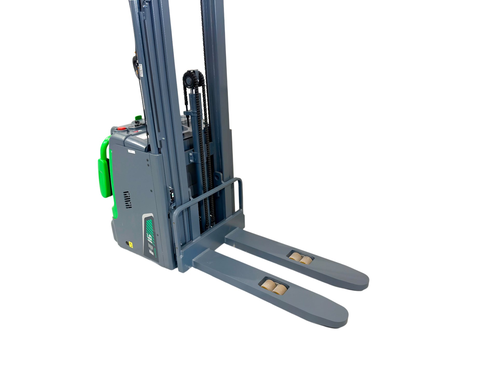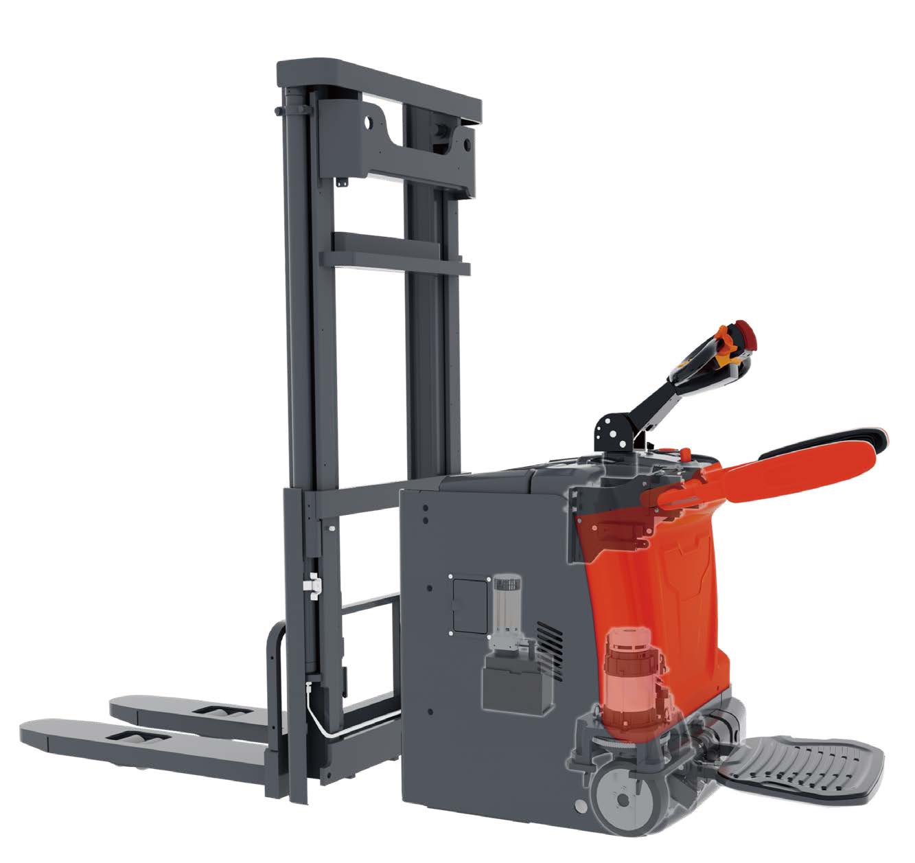 It is built on a 24V AC platform with proportional control, providing smooth driving characteristics, strong responsiveness and improved energy efficiency. The stacker is equipped with an AC drive motor, ZF transmission and ZAPI controller, a combination that delivers powerful performance, stable driving behavior and reliable control even in demanding applications.