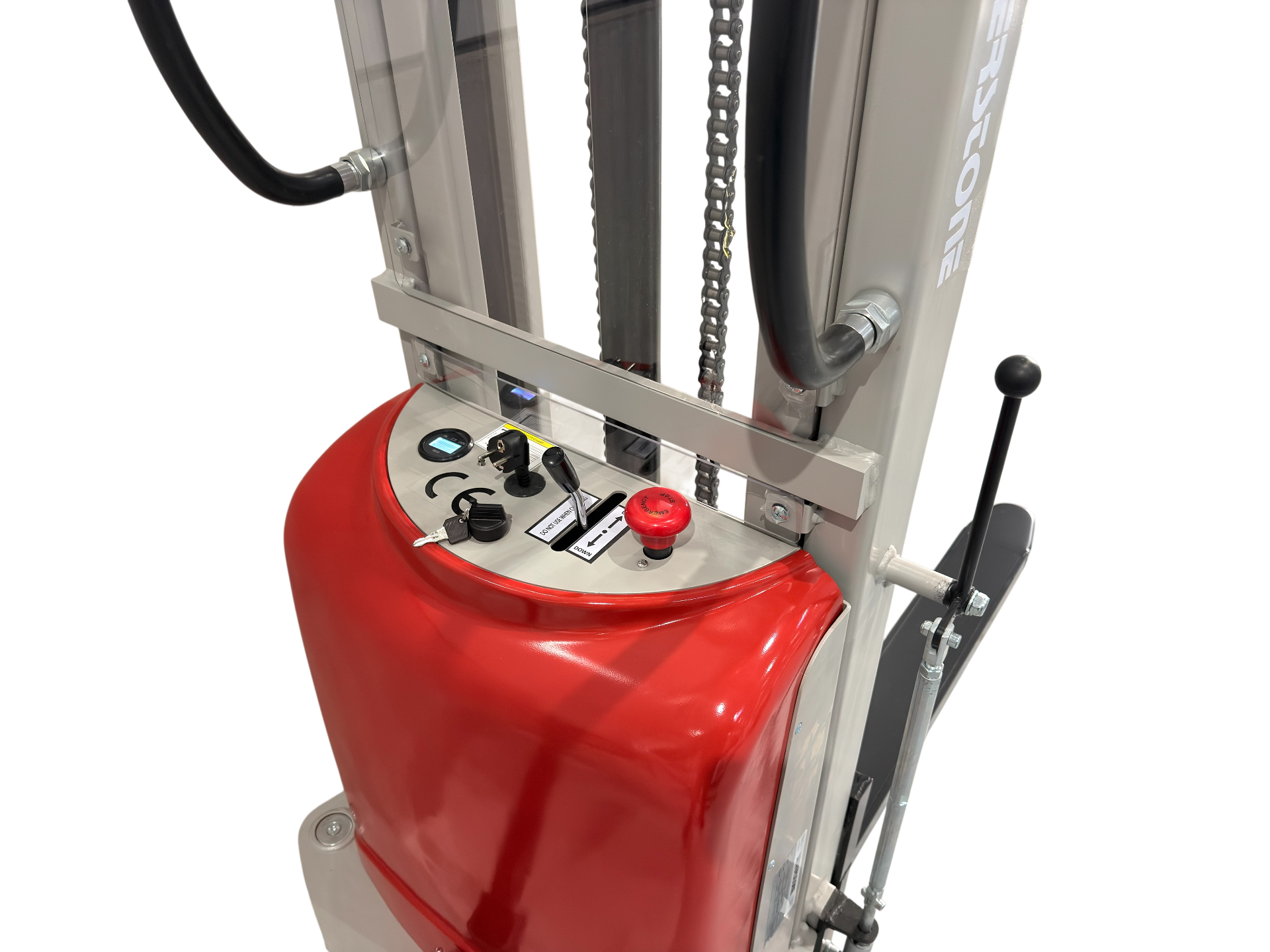 Semi-electric stacker suited for intensive handling and