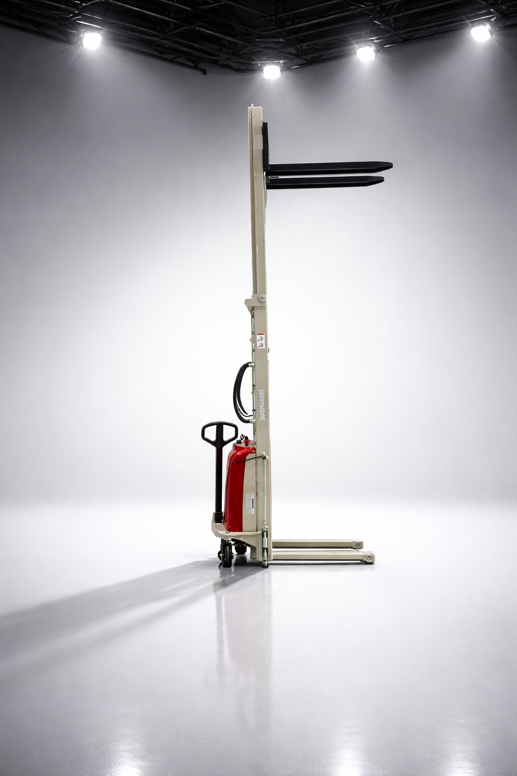 Semi-electric stacker suited for intensive handling and
