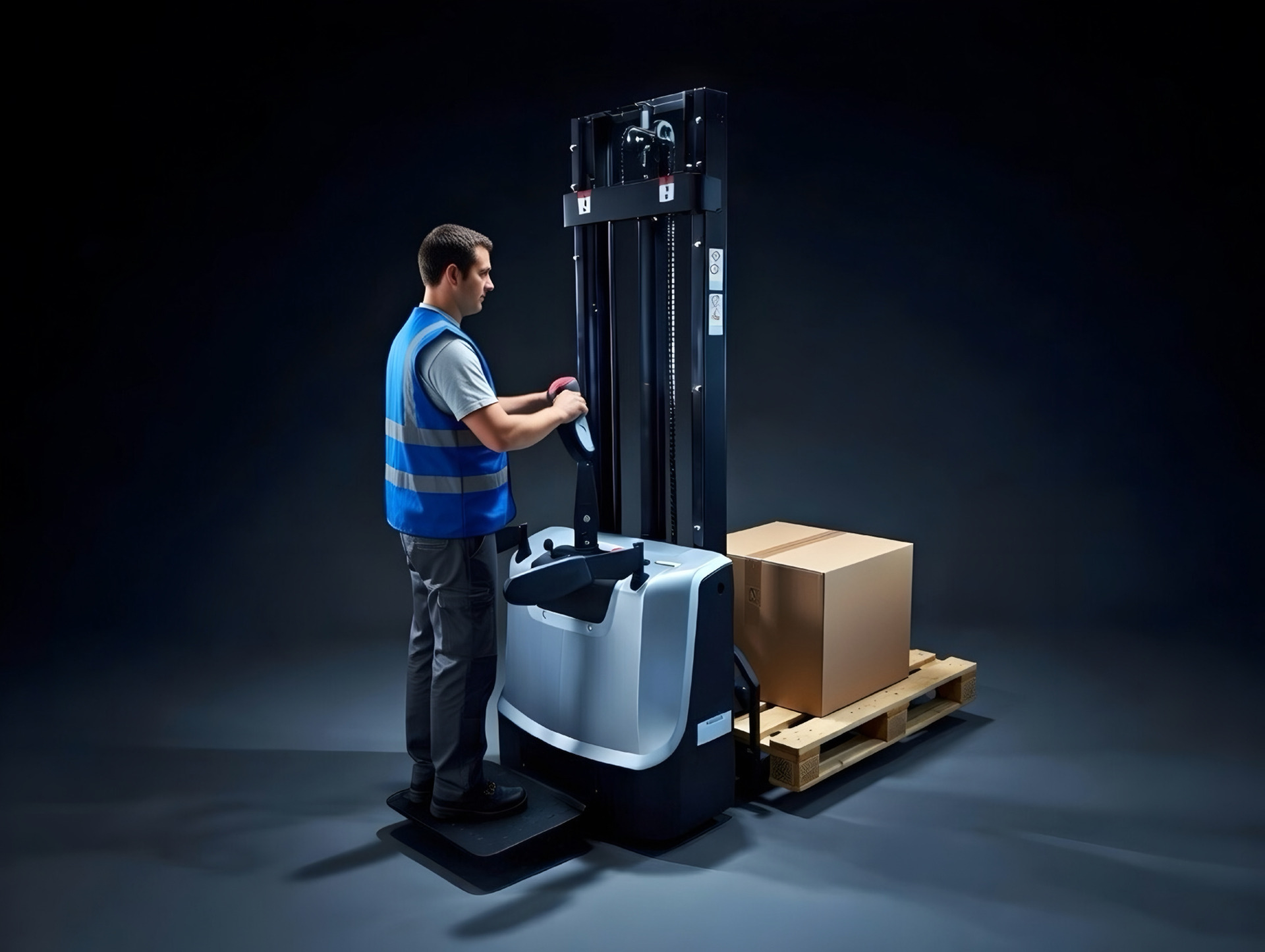 The ES1536P is a compact fully electric stacker with ride-on platform, designed for safe and ergonomic pallet handling in warehouses, retail environments and production facilities.
