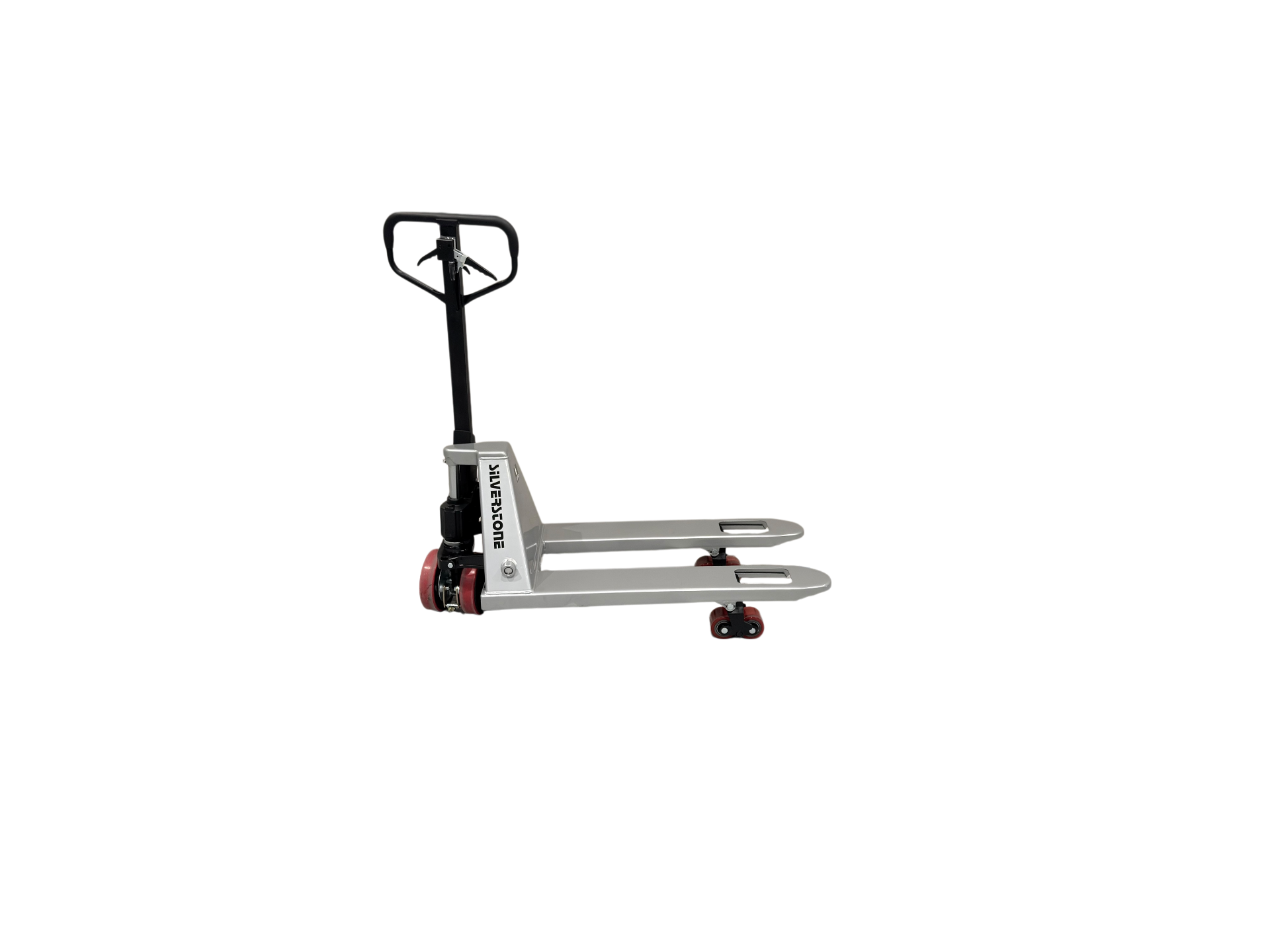 It is equipped with a Quicklift system, allowing the forks to reach the pallet after just a few pump strokes. This saves both time and effort during repetitive lifting tasks and significantly improves efficiency.